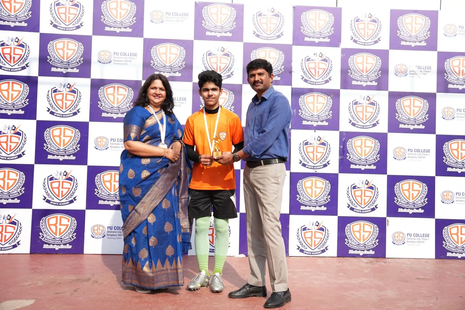 Our school, BS International School, recently hosted an exhilarating football match in Electronic City that brought together the spirit of competition and the joy of teamwork among our students from grades 6, 7, and 8 under the guidance of our Sports Manager, Mr. Santhosh. The atmosphere was electric, filled with cheers and excitement as teams battled it out on the field, showcasing their skills and determination.